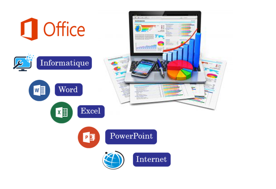 Formez-vous dans le pack office afin de maîtriser le traitement et la mise en forme de texte, les tableurs de calcul sur excel, la présentation Powerpoint, etc. Rentrer dans le monde merveilleux de Microsoft Office avec nos trois niveaux de formation (Débutant, Intermédiaire et avancé).
